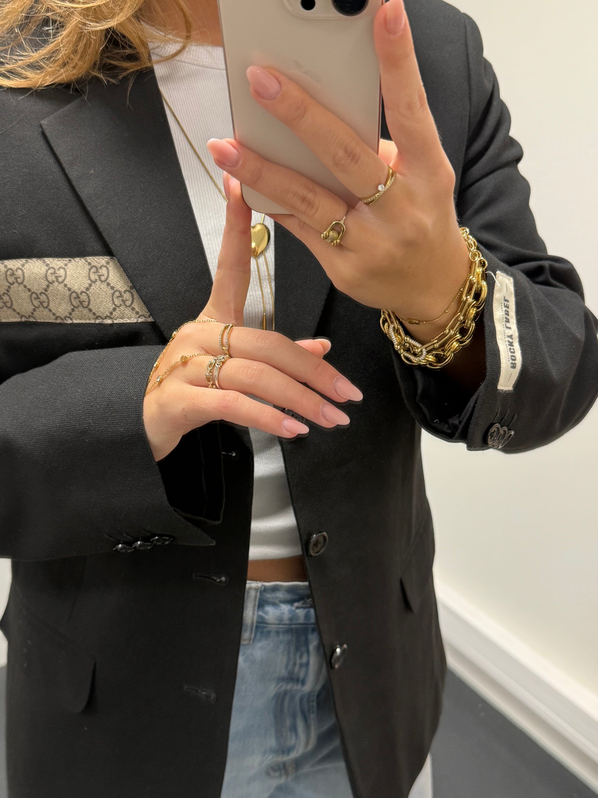 This one-of-a-kind vintage designer blazer has been carefully renewed by hand, making it a unique addition to your wardrobe. With a unique designer patch and our label, it gives elegance and makes a bold statement. Whether you style it casually or dress it up, this blazer will become your your all-time favorite for sure.