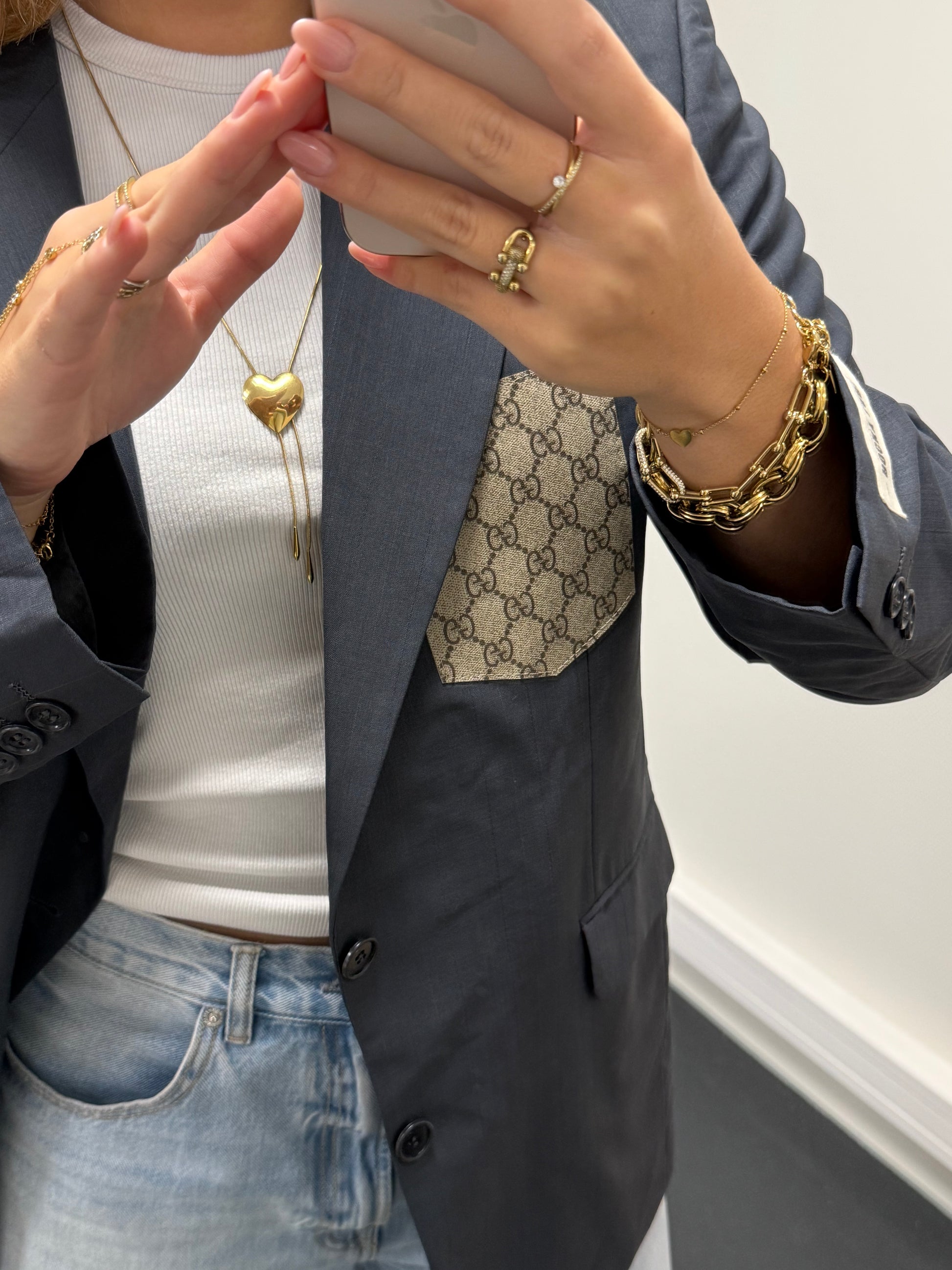 This vintage designer blazer is a one-of-a-kind piece, carefully renewed by hand. Finished with our signature logo, just like every Rocky Label vintage designer blazer, this piece is both unique and timeless. Whether you wear it casually or dressed up, it’s sure to be a favorite.