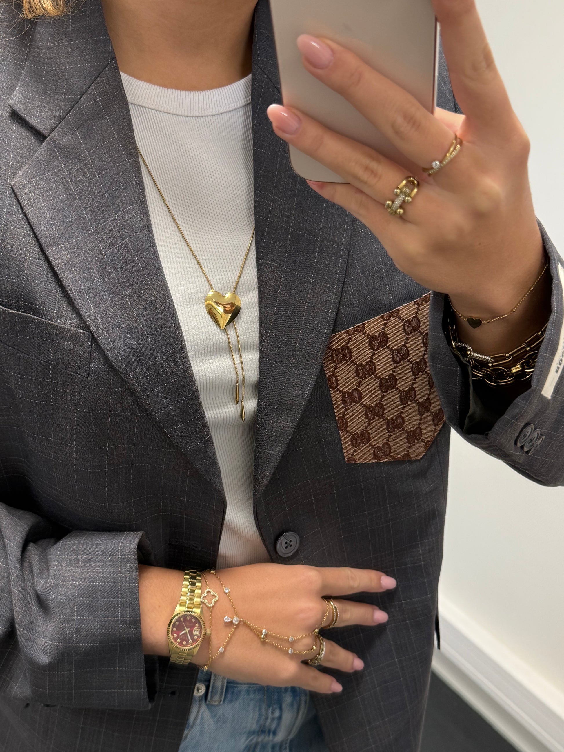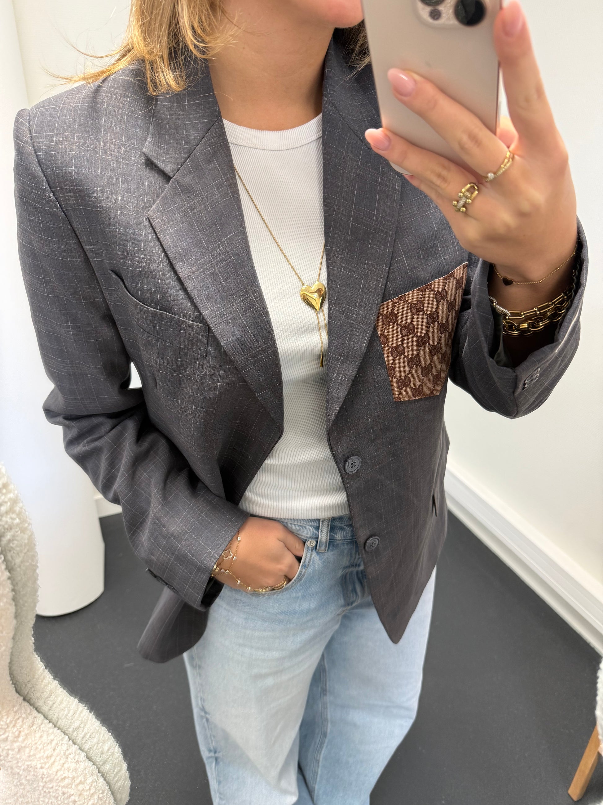 This one-of-a-kind vintage designer blazer has been carefully renewed by hand, making it a unique addition to your wardrobe. With a unique designer patch and our label, it gives elegance and makes a bold statement. Whether you style it casually or dress it up, this blazer will become your your all-time favorite for sure.