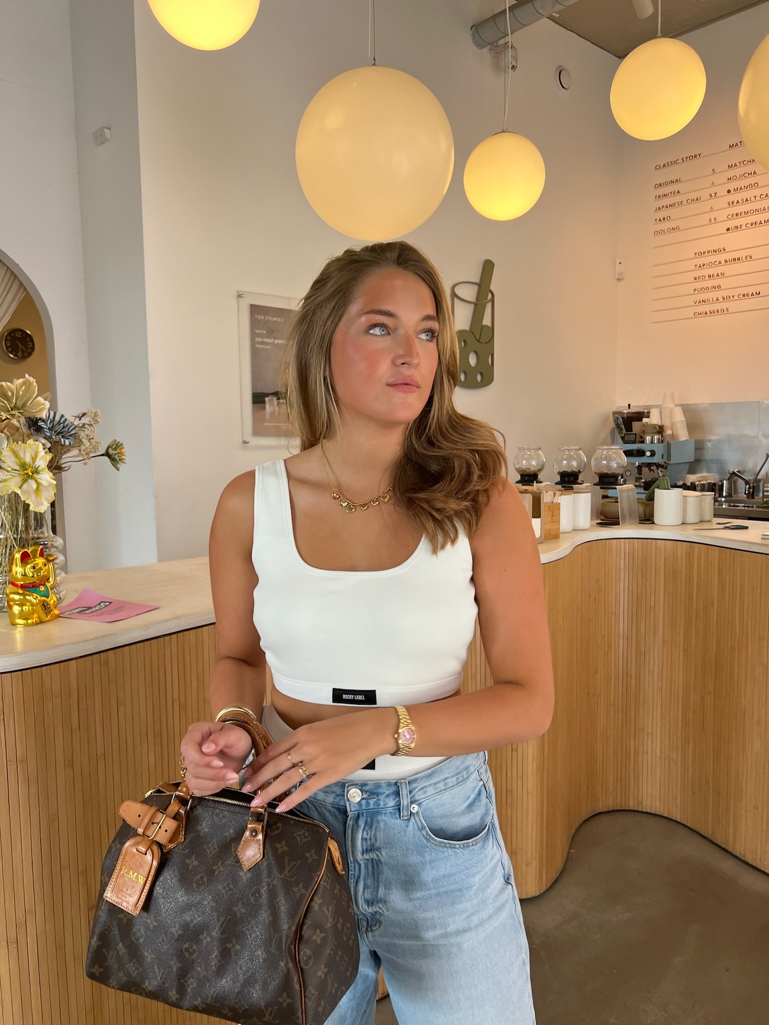 The top includes removable pads that are double-layered, ensuring full coverage and a natural shape without showing through. The shoulder straps are designed slightly shorter than standard, providing a secure and supportive fit while keeping the silhouette refined and chic.